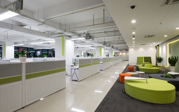 应用设计:开放式办公区宽敞而明亮,鼓励大家在此激烈讨论与分享各自的观点及激发灵感,令人愉悦的环境和功能布局最大限度的提高了员工在工作和休闲中的交流与沟通!